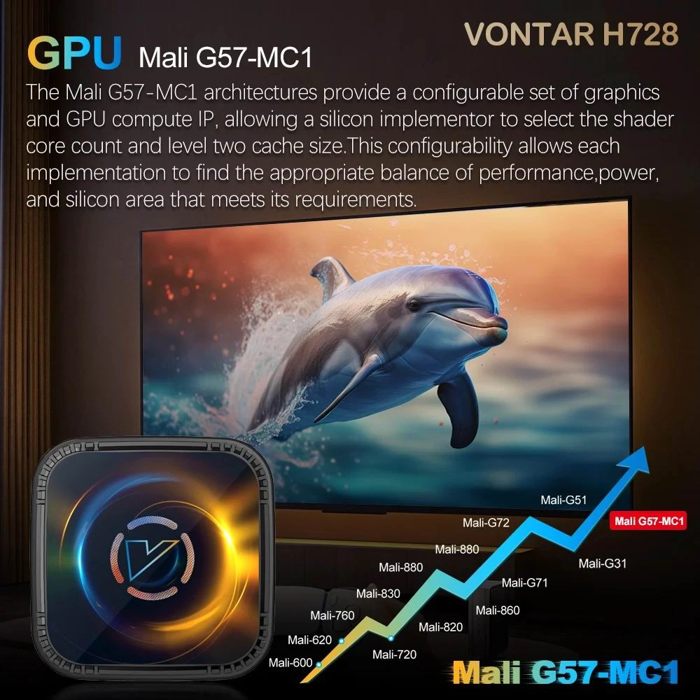 Vontar H728 працює під керуванням операційної системи Android 14, має встановлений медіаплеєр KODI 17.3 та повний доступ до Google Play маркет із тисячами додатків.