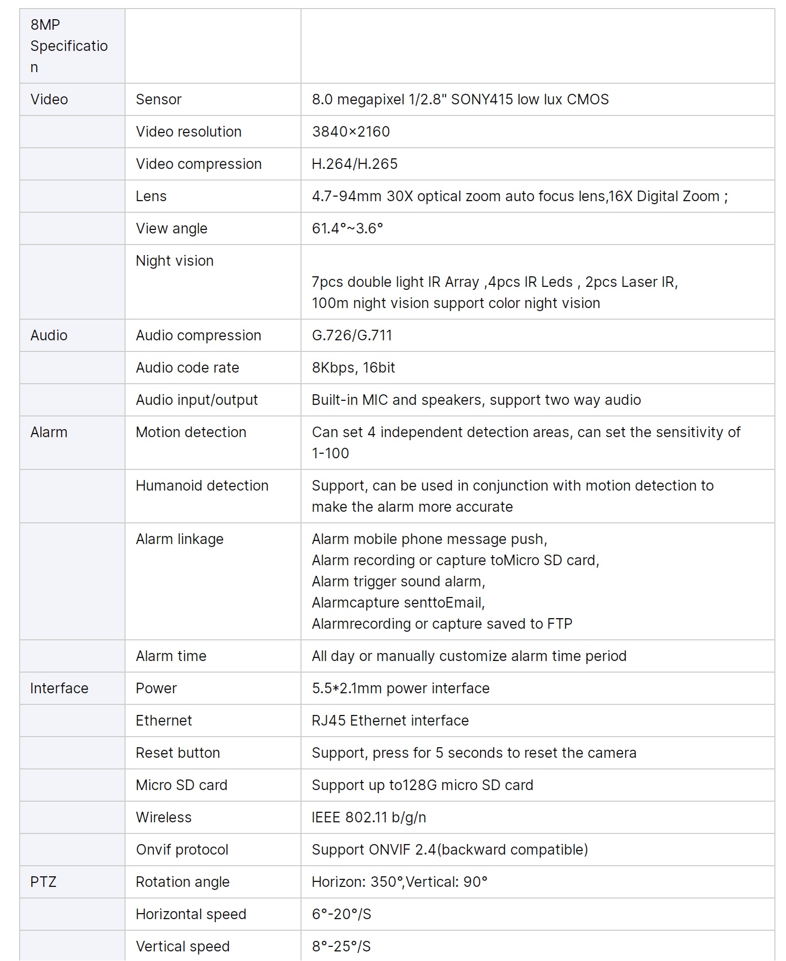 8MP 50X зум WIFI швидкісна PTZ купольна IP-камера. 100 м ІЧ нічне бачення з автостеженням.