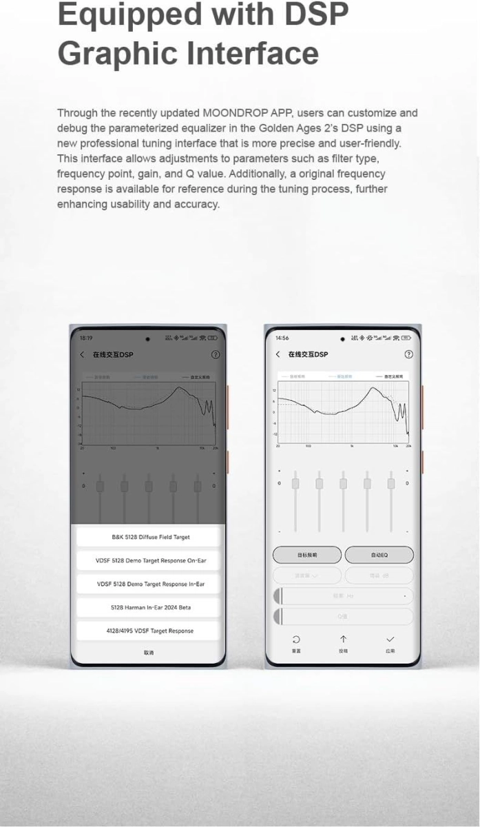 Новий ДОДАТОК MOONDROP має привабливіший інтерфейс, швидшу роботу та ширший спектр функцій. Він пропонує багаті можливості налаштування та нещодавно розроблену інтерактивну функцію DSP другого покоління.