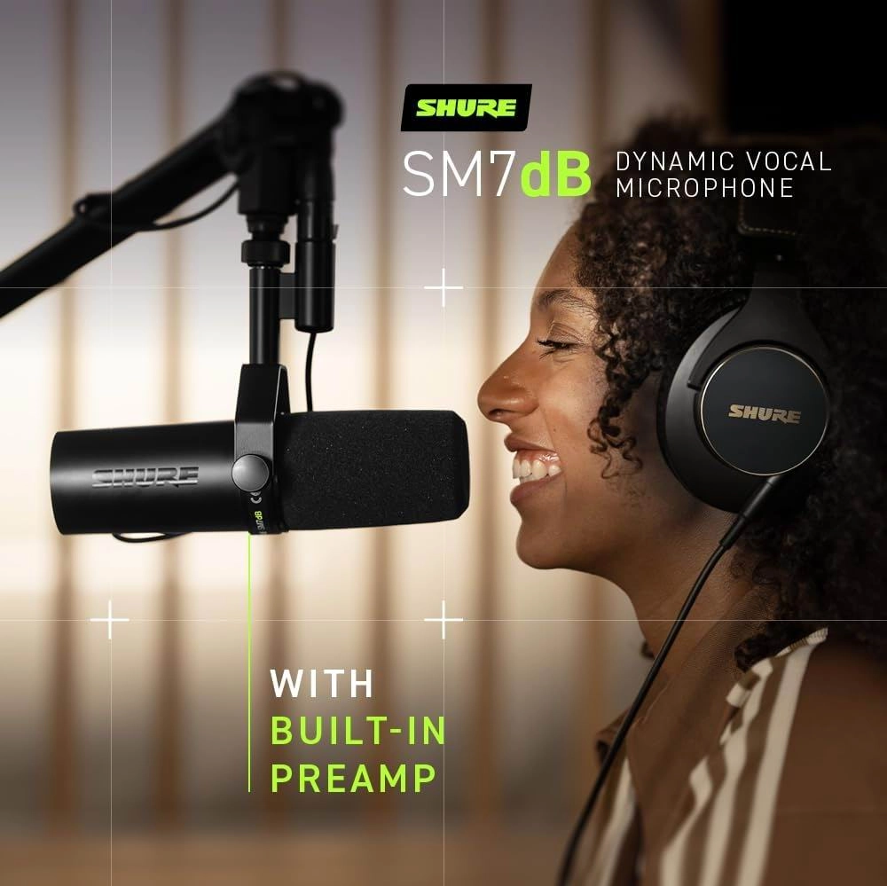 Shure SM7dB – це оновлена версія SM7B із вбудованим підсилювачем для більш надійного вихідного рівня. SM7dB пропонує таку ж плавну, рівну та широкодіапазонну частотну характеристику для музики та мовлення, яка зробила оригінал популярним вибором для професійних аудіо-додатків. Спеціально розроблена динамічна капсула мікрофона забезпечує плавний, бездоганний вокальний звук з багатим відгуком у нижніх частотних регістрах, що робить мікрофон фаворитом серед мовників та подкастерів.