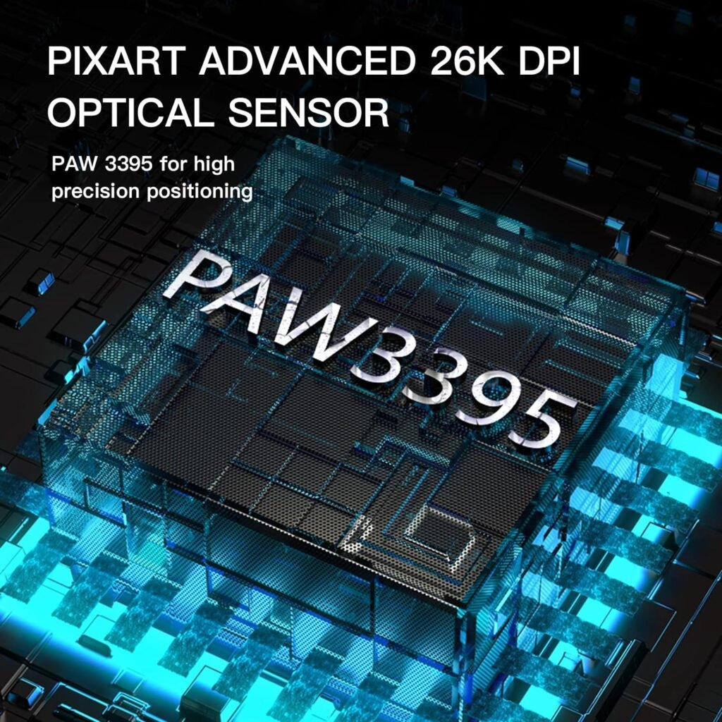 Миша оснащена датчиком PAW3395, який надає роздільну здатність до 26000 DPI, швидкість відстеження 650 IPS і частоту відгуку 1000 Гц. Такі характеристики забезпечують швидкість і точність, необхідні для ігрових застосувань.