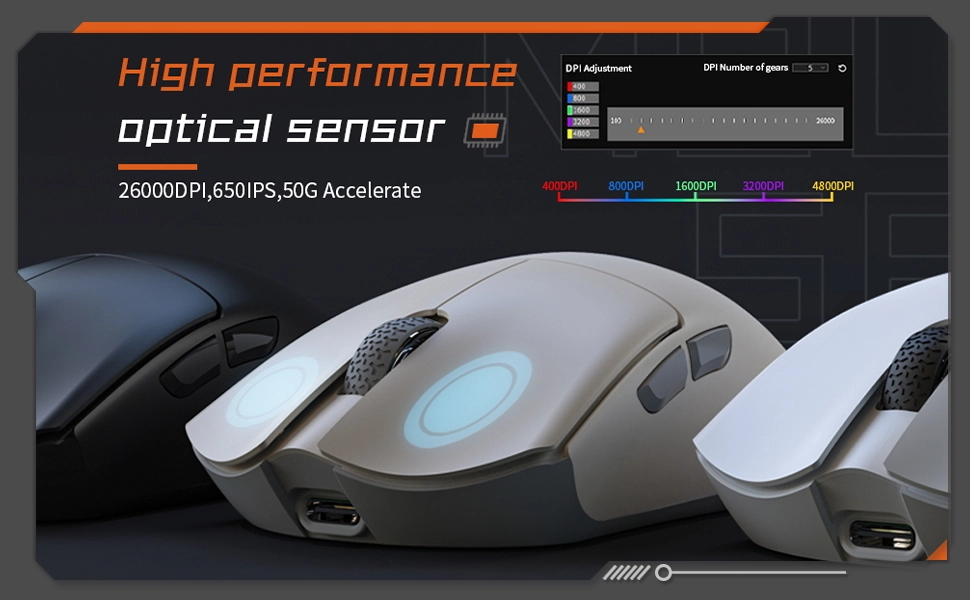 Бездротова ігрова миша Darmoshark використовує найкращий датчик 3395 з роздільною здатністю до 26000 точок на дюйм, швидкістю відстеження 650 IPS та частотою відгуку до 1000 Гц. З прискоренням 50G, вона швидша та точніша, ніж звичайна миша, надаючи геймерам на ПК найкращий ігровий досвід.