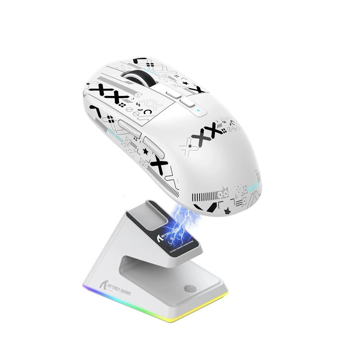 Просто розмістіть мишу X6 на зарядну базу, і вона завжди буде заряджена та готова до будь-яких пригод. Магнітна конструкція забезпечує зручність та швидкість заряджання. На зарядній базі також є сенсорний перемикач, який дозволяє змінювати ефект підсвічування дотиком.