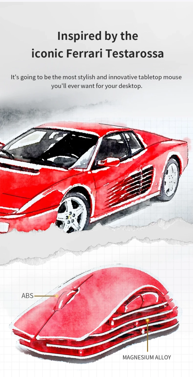 AJAZZ черпав натхнення в дизайні решітки повітрозабірника культового автомобіля Ferrari Testaross. Корпус M259 має такий же дизайн решітки. Завдяки своєму досвіду AJAZZ створив це з легкого, але міцного матеріалу зі сплаву магнію та алюмінію. Сплав Mg-Al надає миші міцну раму та міцну конструкцію. Сплав Mg-Al поєднується із закритою верхньою кришкою з АБС-пластику, що забезпечує комфортніше використання.