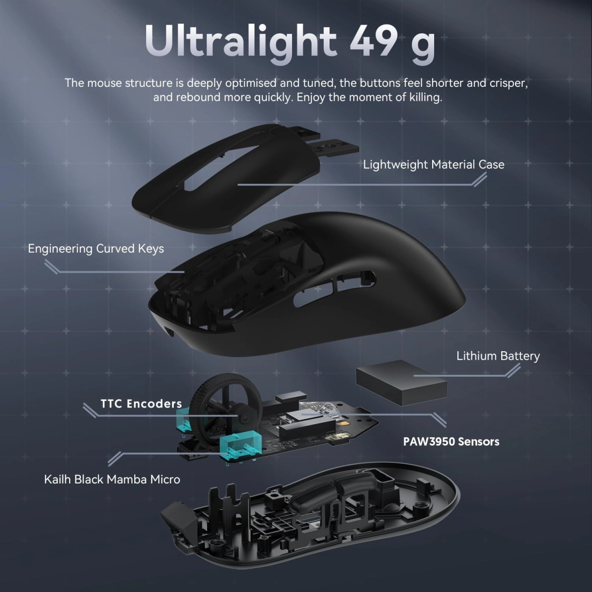 Зробіть свій ігровий процес кращим за допомогою MAMBASNAKE x ATTACK SHARK X3MAX із оновленим датчиком PixArt 3950. З приголомшливою роздільною здатністю 42 000 точок на дюйм, прискоренням 50 g і частотою опитування 1000 Гц цей датчик забезпечує неперевершену точність і чутливість для ігор FPS з високими ставками, MOBA та Battle Royale. У поєднанні з технологією Broadcom він забезпечує безперебійну надшвидку роботу, що робить його найкращим інструментом для змагальних геймерів.