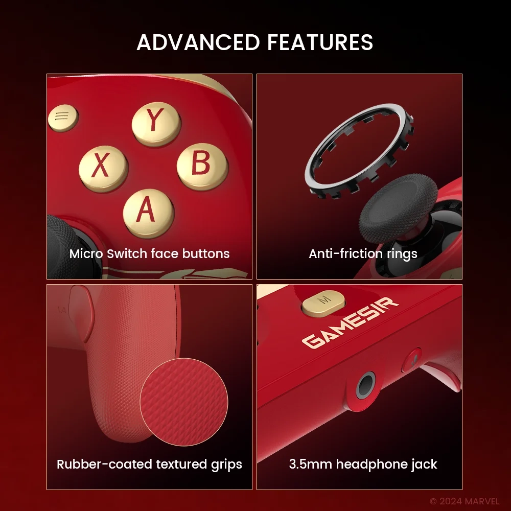 Спеціально налаштовані тактильні лицьові кнопки GameSir мають 5-шарову структуру. Мікроперемикачі забезпечують швидке спрацьовування з мінімальною відстанню спрацьовування всього 0,6 мм, а вбудований комплект, що містить м'яку гумову накладку та кронштейн, забезпечує приємне натискання й чіткі, але м'які відчуття.