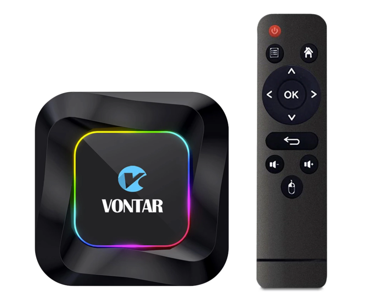 VONTAR R3 — ТБ-приставка на операційній системі Android 13 працює під керуванням чотириядерного процесора RK3528 і п'ятиядерного графічного супроцесора Mali-450, обладнана дводіапазонним модулем Wi-Fi та підтримує під'єднання до інтернету через кабель на швидкості до 100 Мбіт/с.