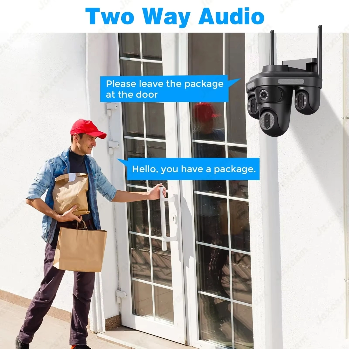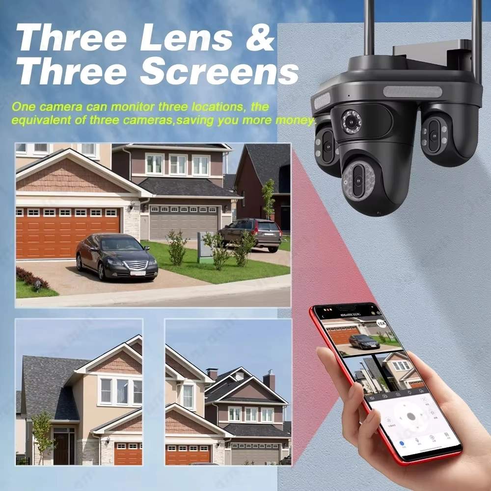 Підключення Wi-Fi і підключення до локальної мережі Завдяки адаптеру DC12V ви можете підключити камеру до мережі Wi-Fi. ви можете налаштувати Wi-Fi-з’єднання камери або пошук у локальній мережі за допомогою мережевого кабелю, під’єднаного до маршрутизатора, працювати лише з Wi-Fi 2.4G (не підтримує 5G). Основні особливості: - Дизайн трьох лінз і трьох екранів, що дозволяє бачити більше деталей; - Графіка надвисокої чіткості забезпечує візуальний досвід вищої чіткості - Роздільна здатність 8K: пікселі кожного об’єктива 5 МП, об’єктив 5 МП + об’єктив 5 МП + об’єктив 5 МП = 8K - Оснащена антеною з високим коефіцієнтом посилення 5dBi, ваша камера може отримувати більш широкий діапазон сигналів; - Вбудований інфрачервоний світлодіод і білий світлодіод, які представляють для вас чіткі та барвисті денні/нічні зображення; - 3 режими зображення: розумний режим/інфрачервоний режим/кольоровий режим, - Інфрачервоний режим – це режим увімкнення інфрачервоного порту. Зображення чорно-біле, білий світлодіод не горить Кольоровий режим: світиться білий світлодіод, день і ніч кольорове бачення; - 24/7 детекція руху; Натискання в режимі реального часу для захисту вашої сімейної безпеки; - Вбудовані високоякісні динаміки та мікрофони для безперешкодної двосторонньої розмови; - Технологія придушення та придушення відлуння та придушення шуму, ідеальний повнодуплексний голосовий ефект; - Підтримка 2,4 ГГц WiFi з'єднання (не підтримує 5G WiFi); Підтримка мережевого кабелю RJ-45; - Передача зображення в реальному часі, адаптивна мережа; - ДОДАТОК: ICSEE