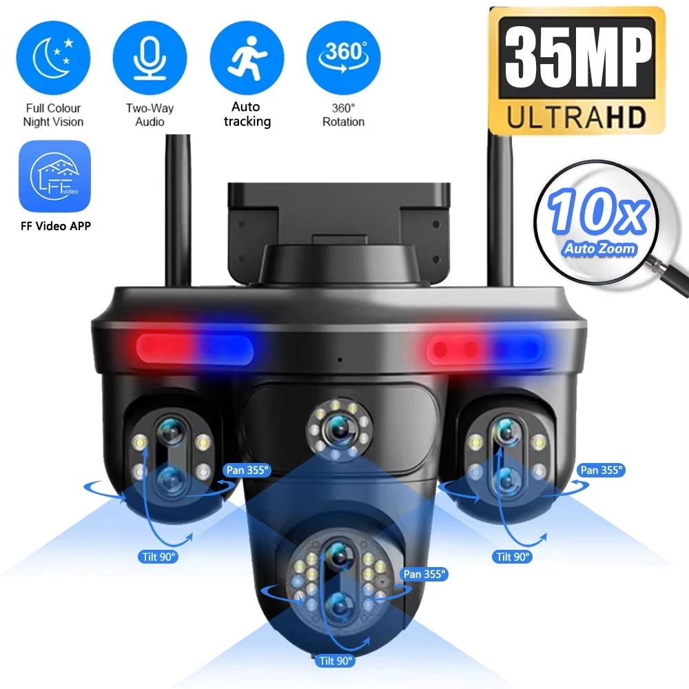 Основні характеристики: ●Підтримка Wi-Fi 2,4 ГГц, 30-кратне збільшення 3*10X. ●7-об'єктивна камера одночасно контролює 4 зони та відображає 4 зображення у мобільному додатку. ●Дистанційне керування PTZ ●Двосторонній аудіозв'язок ●Виявлення людини/руху ●Автоматичне відстеження ●Локальна пам'ять (карта TF) та хмарне сховище (безкоштовно) ●Перегляд у режимі реального часу кількома користувачами ●Інфрачервоне/кольорове нічне бачення ●Пило- та водонепроникність IP66 ●Роздільна здатність одного об'єктива — 5 МП, роздільна здатність 7 об'єктивів — 5 МП+5 МП+5 МП+5 МП+5 МП+5 МП=35 МП ●Підключення об'єктива, дивіться куди завгодно ●Підтримка дротової мережі RJ45 7 об'єктивів та 4 екрани Ви можете одночасно контролювати 4 різні місця, що є економічно вигідним та безтурботним!