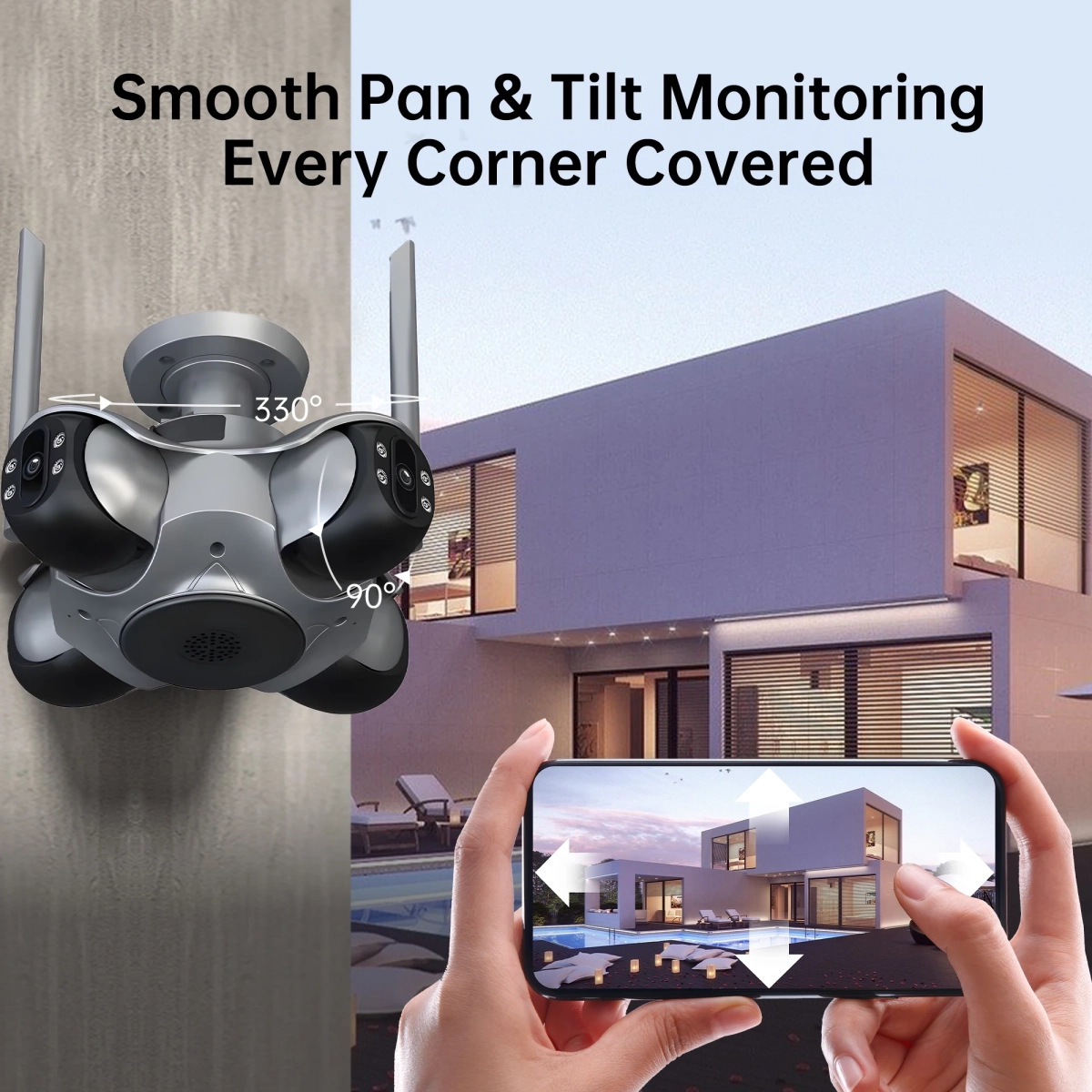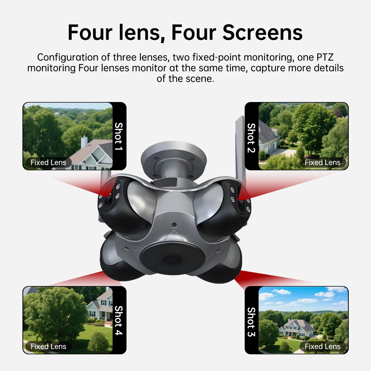 10K 4-об'єктивна 4-екранна PTZ камера, автоматичне відстеження, бездротова Wi-Fi камера