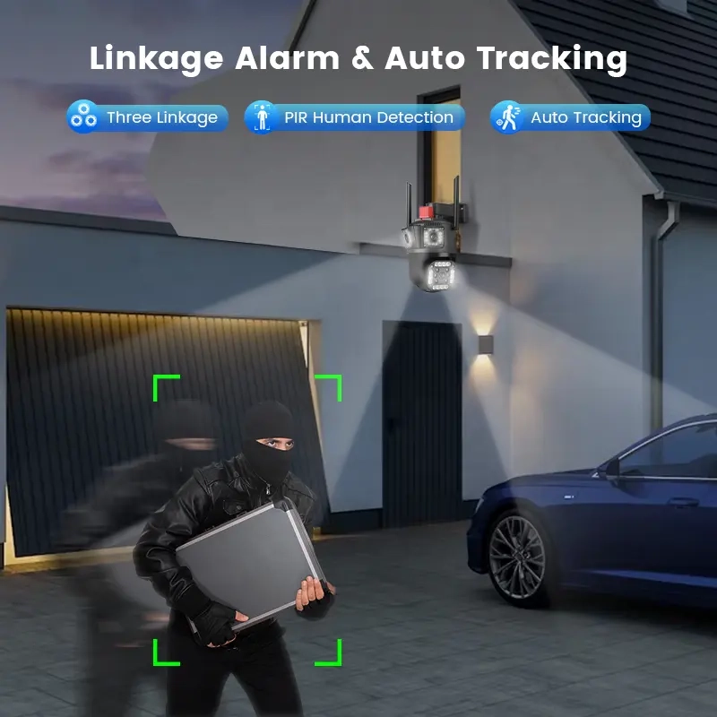 Триекранне автофокусування з автоматичним відстеженням * Коли виявляється рух людини, камера відстежує рух людського тіла, випромінює світло та надсилає сповіщення в реальному часі.