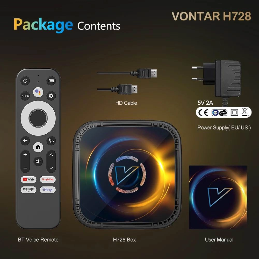 Vontar H728 працює під керуванням операційної системи Android 14, має встановлений медіаплеєр KODI 17.3 та повний доступ до Google Play маркет із тисячами додатків.