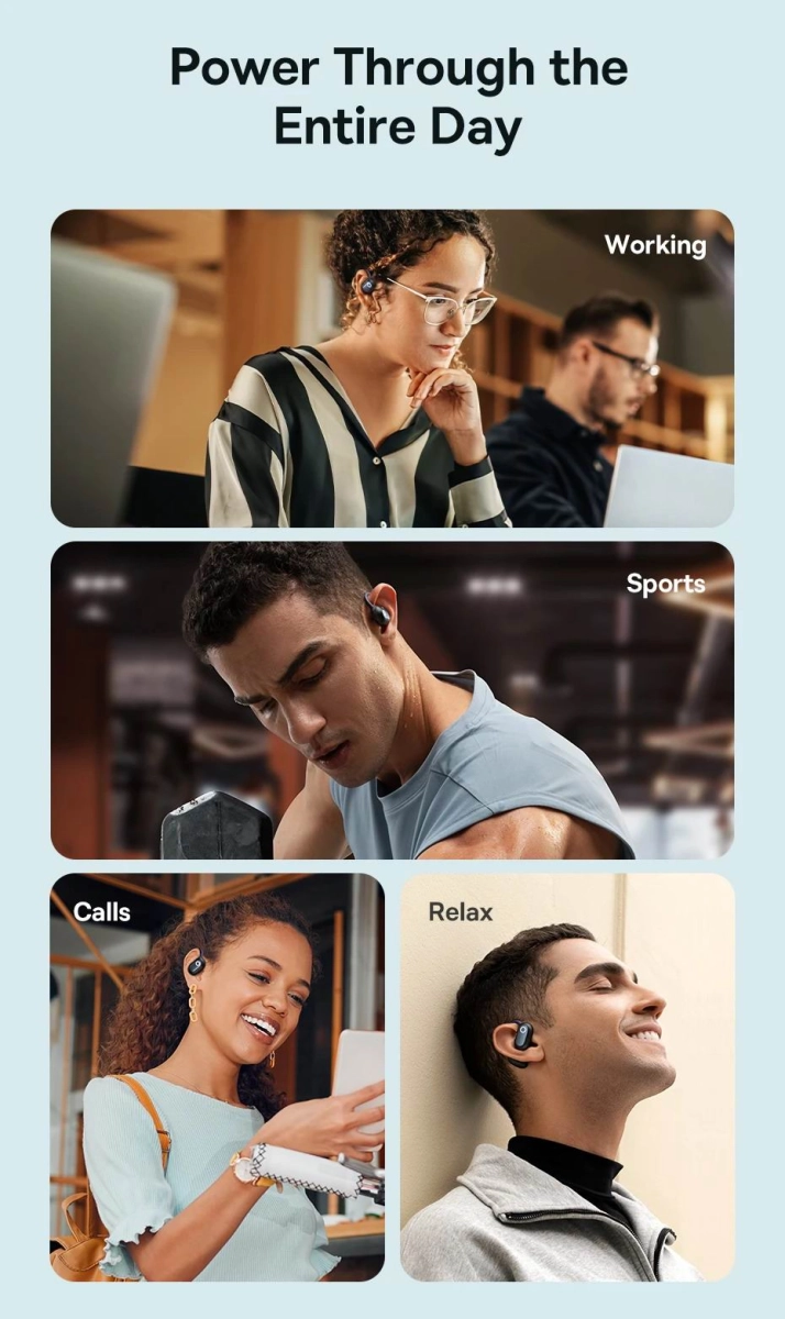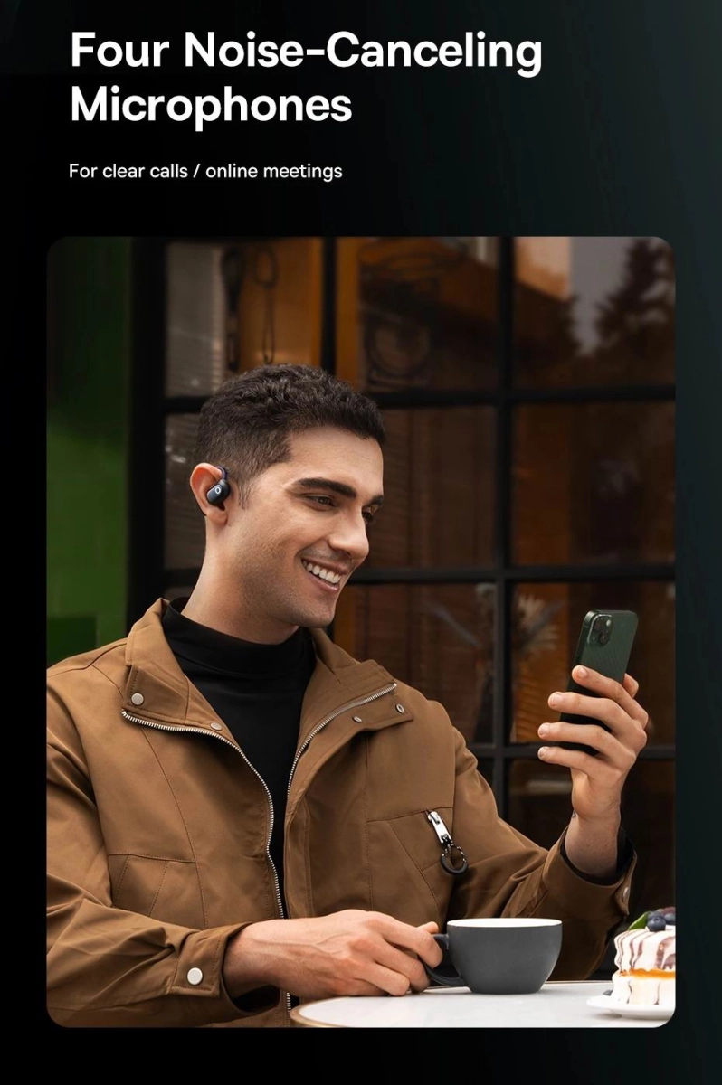 Завдяки конструкції відкритого типу, навушники не ізолюють вас від навколишнього світу. Ви зможете чути музику, подкасти та дзвінки, залишаючись в курсі того, що відбувається навколо, що особливо важливо для безпеки під час пробіжок, прогулянок або їзди на велосипеді в місті.